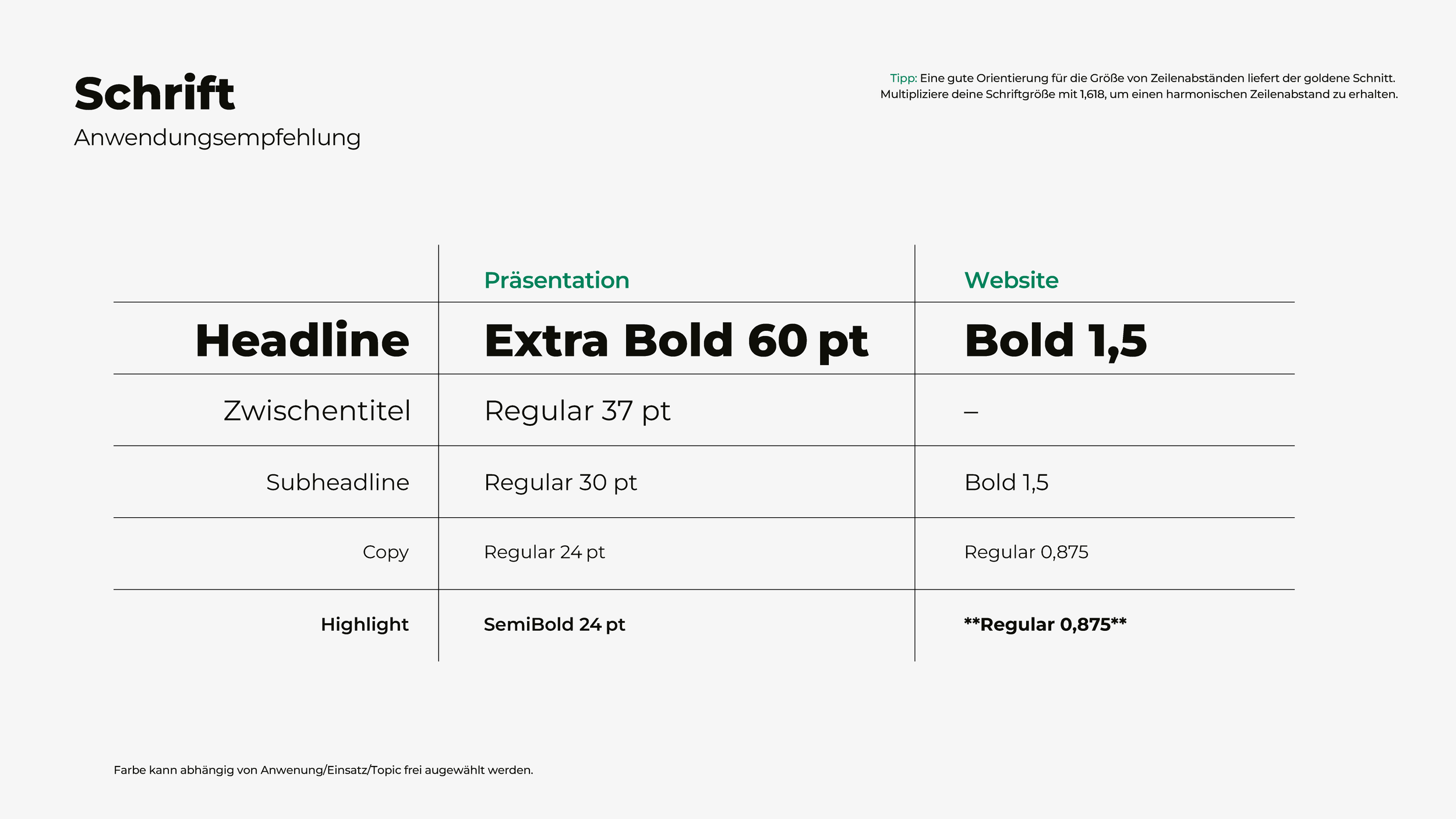 Keine 50-seitige Design-Bibel. Ein schlanker Leitfaden mit dem Nötigsten: Logo-Anwendung, Farbcodes, Schriftempfehlungen. Praktisch, nicht theoretisch.